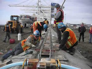 February 2009 and Levelton Consultants were looking at a grout specification for grouting under the crane rails for the new third berth at Delta Port.